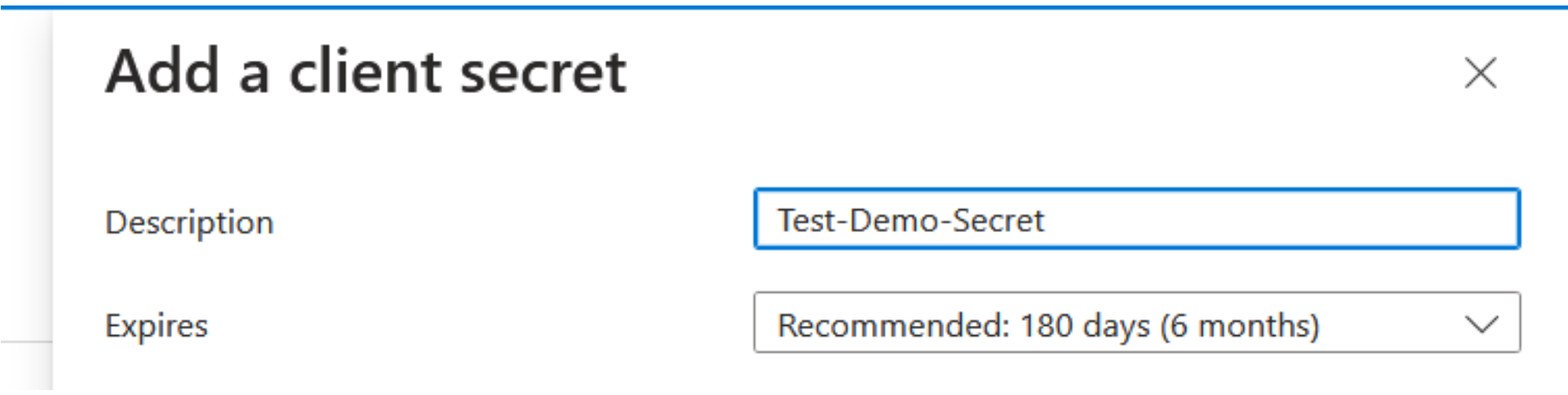 Enter a description for the client secret, select an expiration date, and then click “Add” to generate the secret.