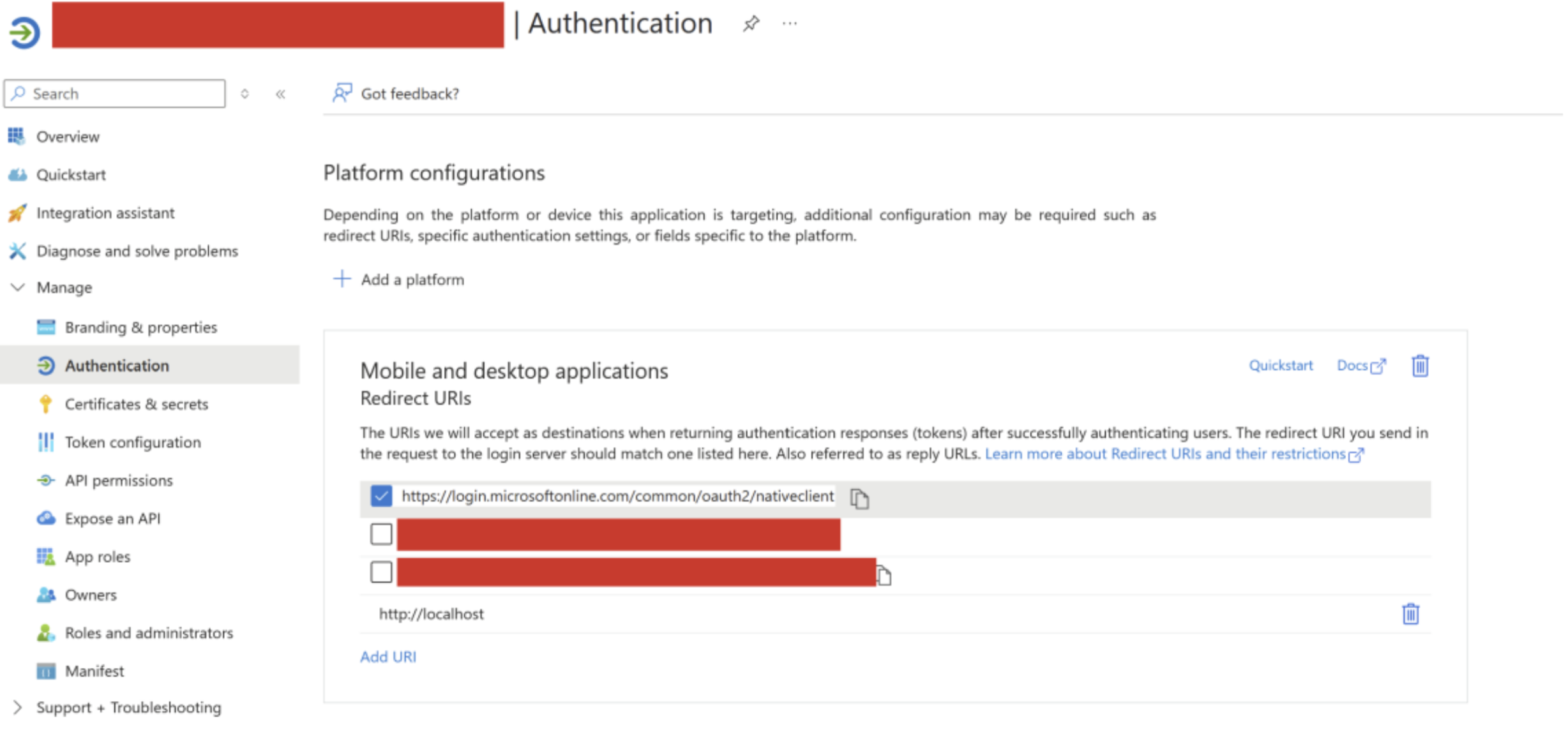 – In the list of recommended redirect URIs, check (or add) “https://login.microsoftonline.com/common/oauth2/nativeclient”; - Save the Configuration – Click Save at the top of the page.